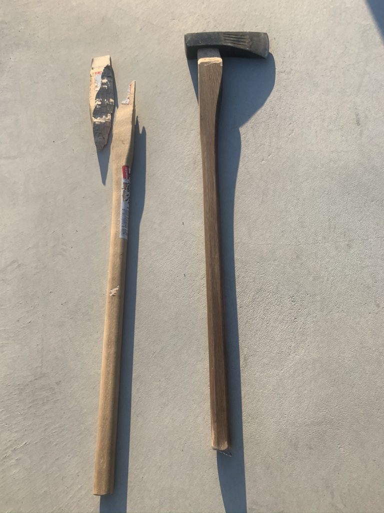 ホームセンターで売っている斧です。大きい丸太は中々割れません。