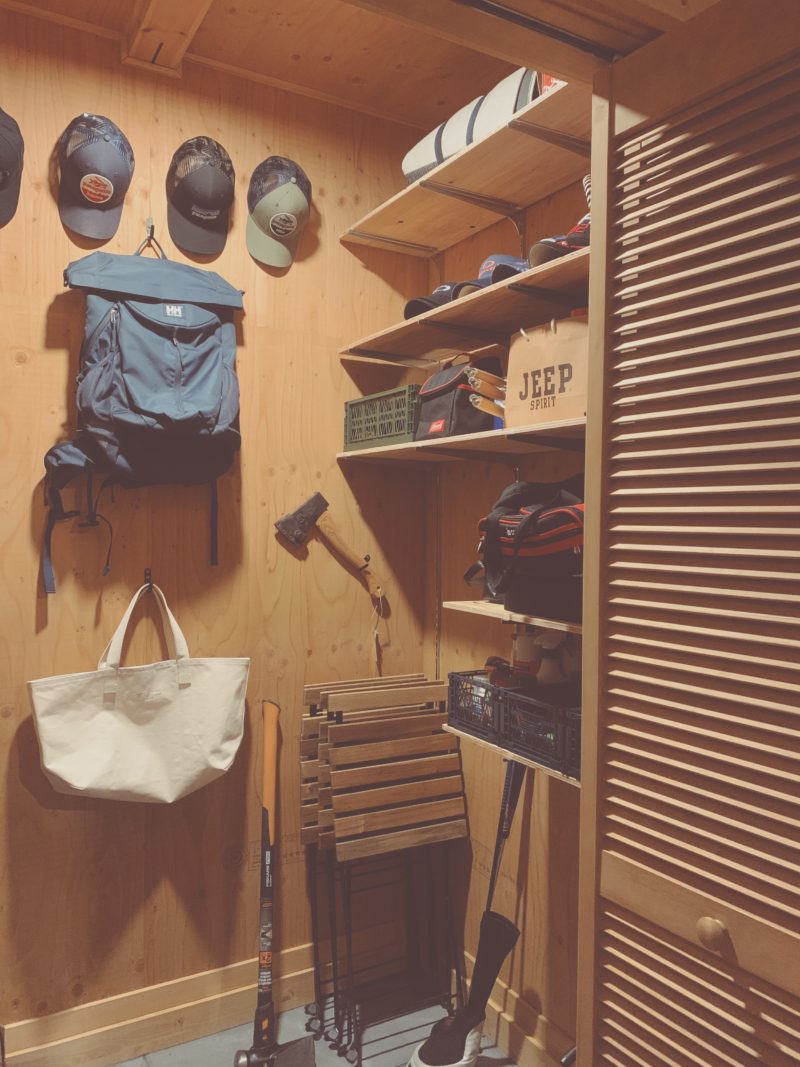 帽子収納、ゴルフ道具収納、キャンプグッズ収納など、趣味用品の収納にぴったりの空間ができました。